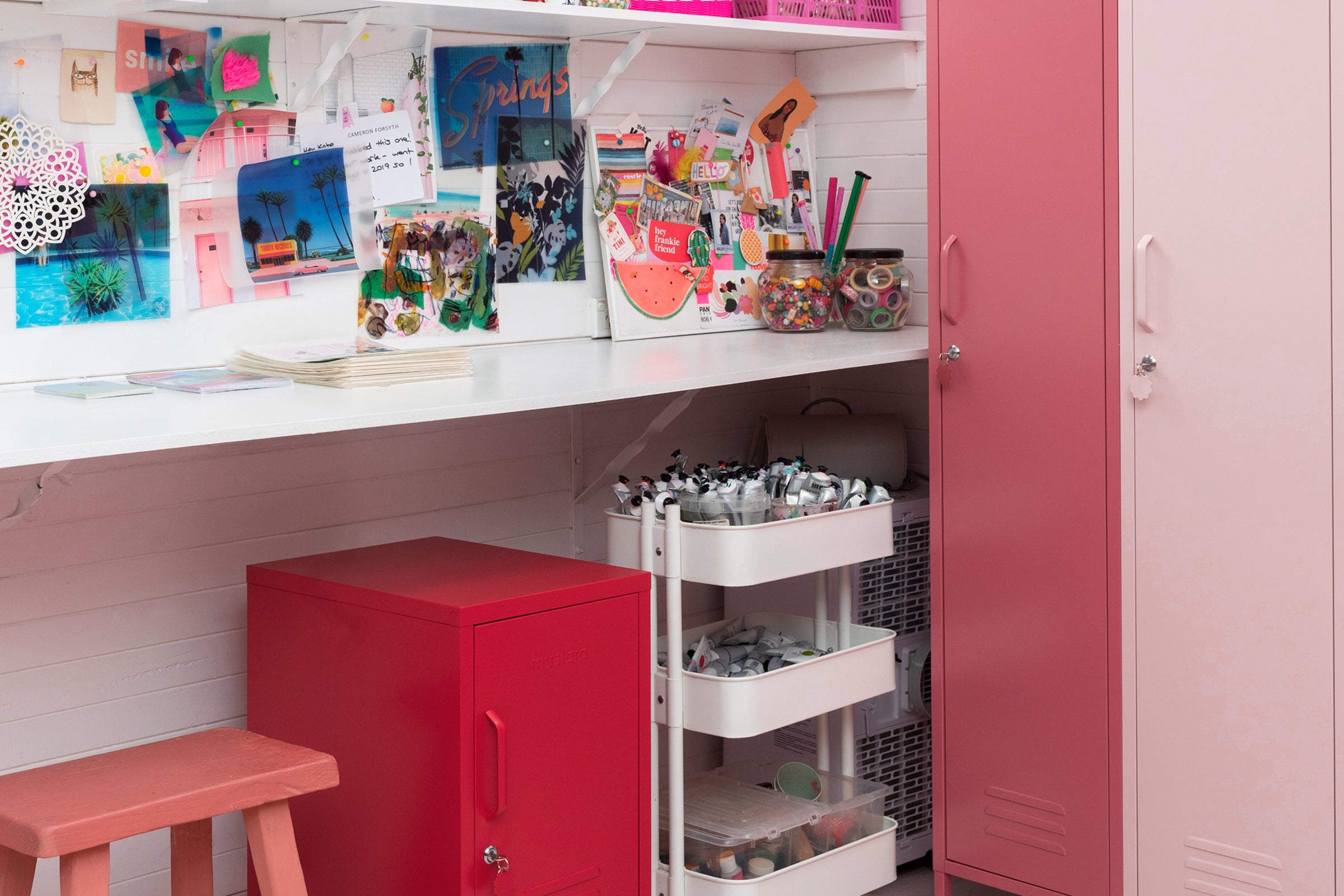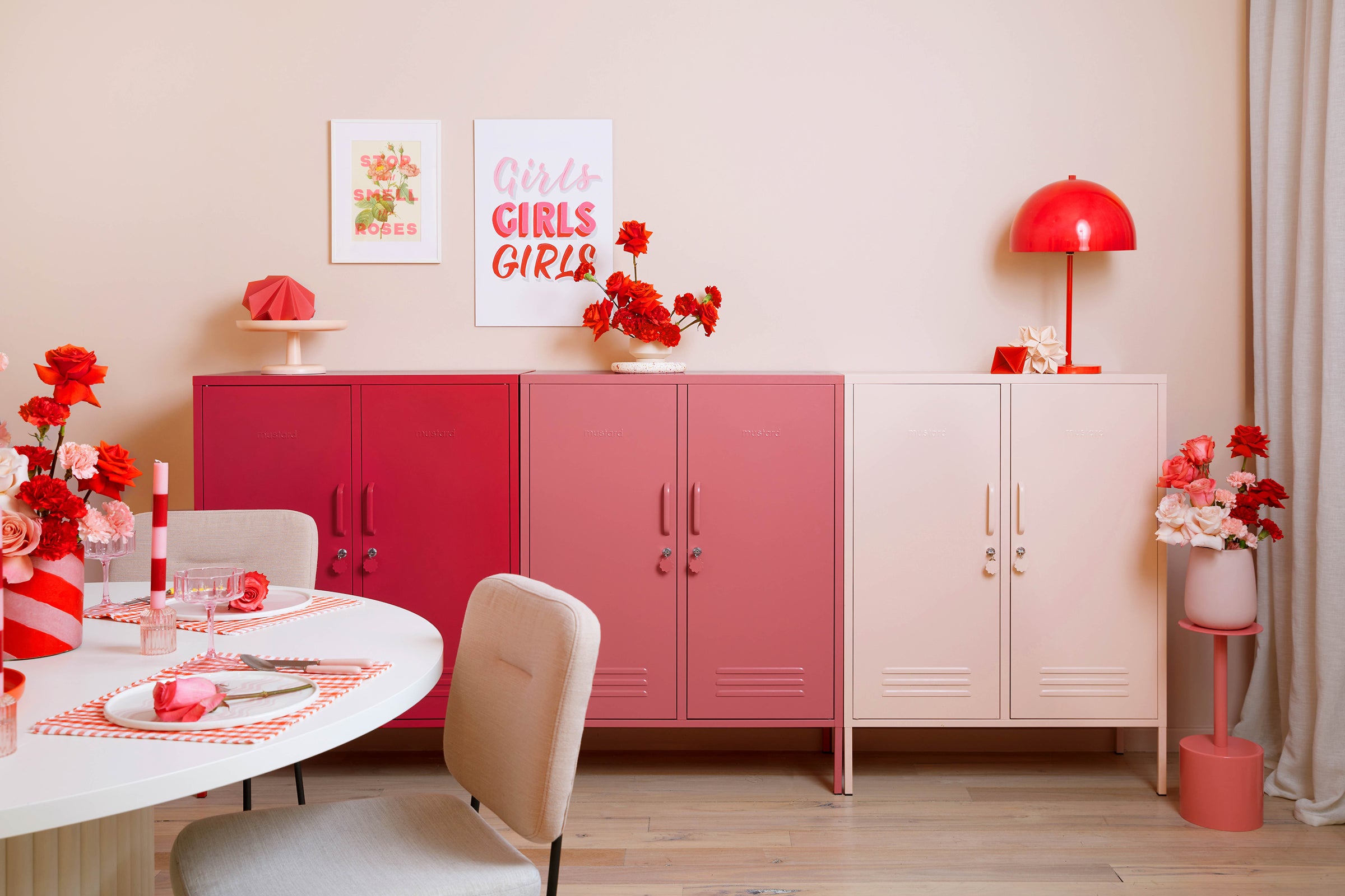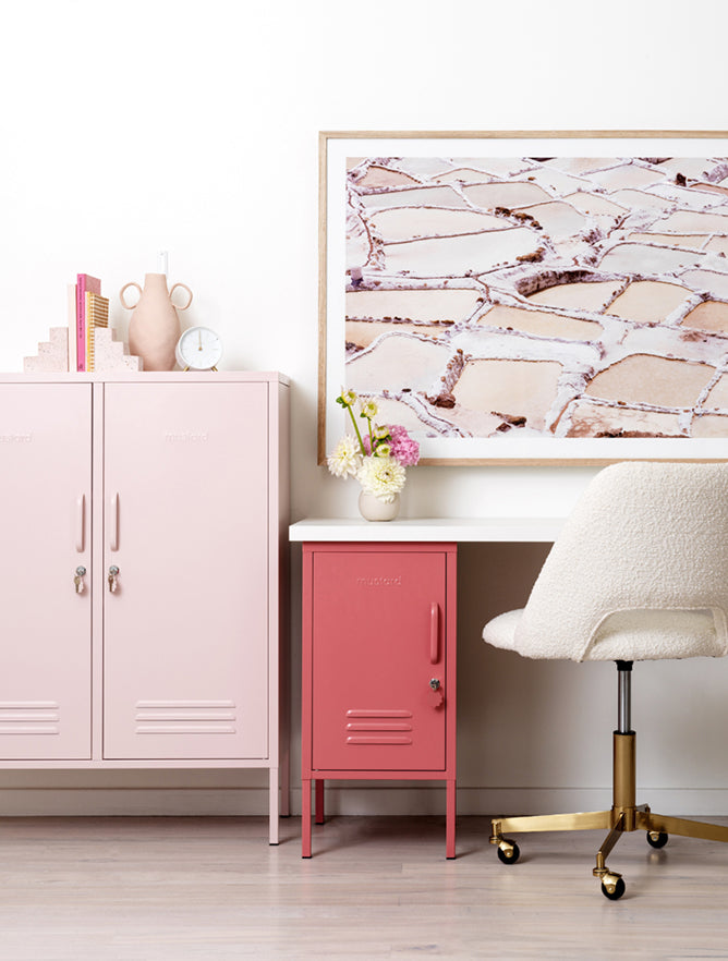 How to: Choose a Mustard locker in pink or red and use accent pieces to build your ombre look.