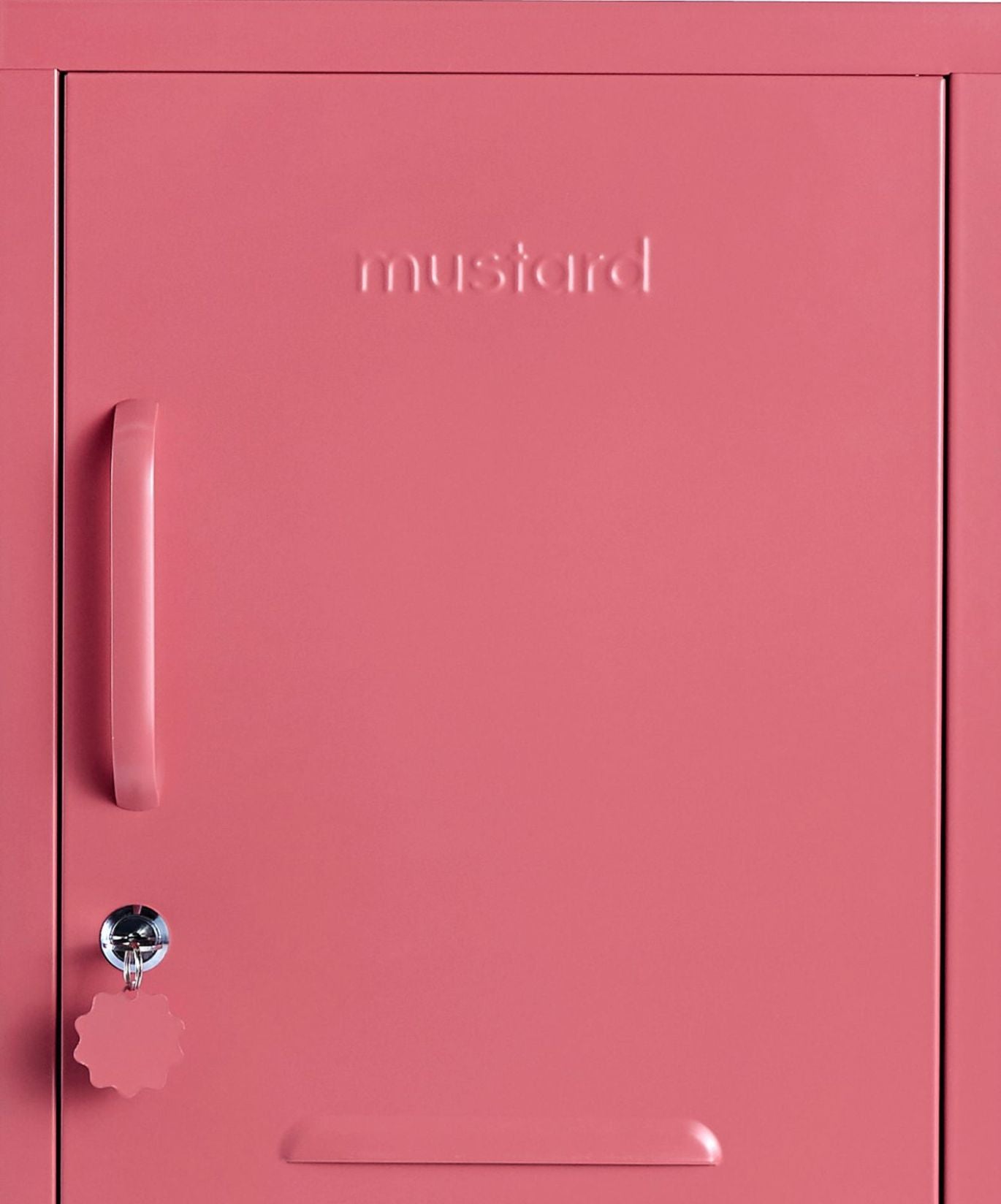 Inside, there are two adjustable shelves and one handy hook. On the outside, you'll find a handle, lock, custom keyring, air vents and a subtle embossed 'mustard', to let you know it's the real deal. The door opens to the right! Plus, the whole locker is smooth, matte and magnetic. Screens don't always do our colours justice — order a swatch to see how it looks in your space.